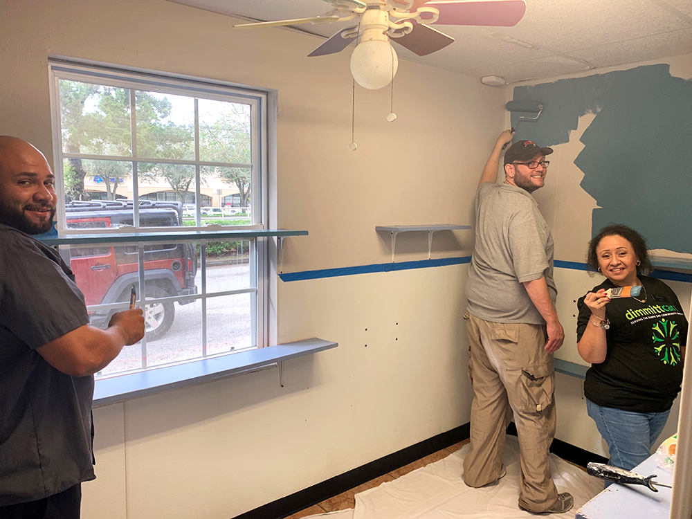 A team of Dimmitt Automotive Group Associates volunteered at the Humane Society of Pinellas County with painting the “meet and greet” rooms for the animals. These “meet and greet” rooms are the room where people spend time getting to know an animal before they adopt. The Humane Society of Pinellas County is Pinellas’ “leading resource for animal advocacy and the largest no-kill organization.”