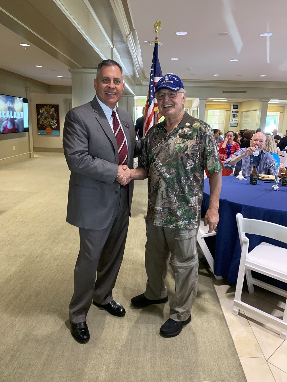 Veterans and guests enjoyed a catered lunch of delicious barbeque by Jones Catering. The luncheon provided an opportunity for guests to mingle and show support to each other.