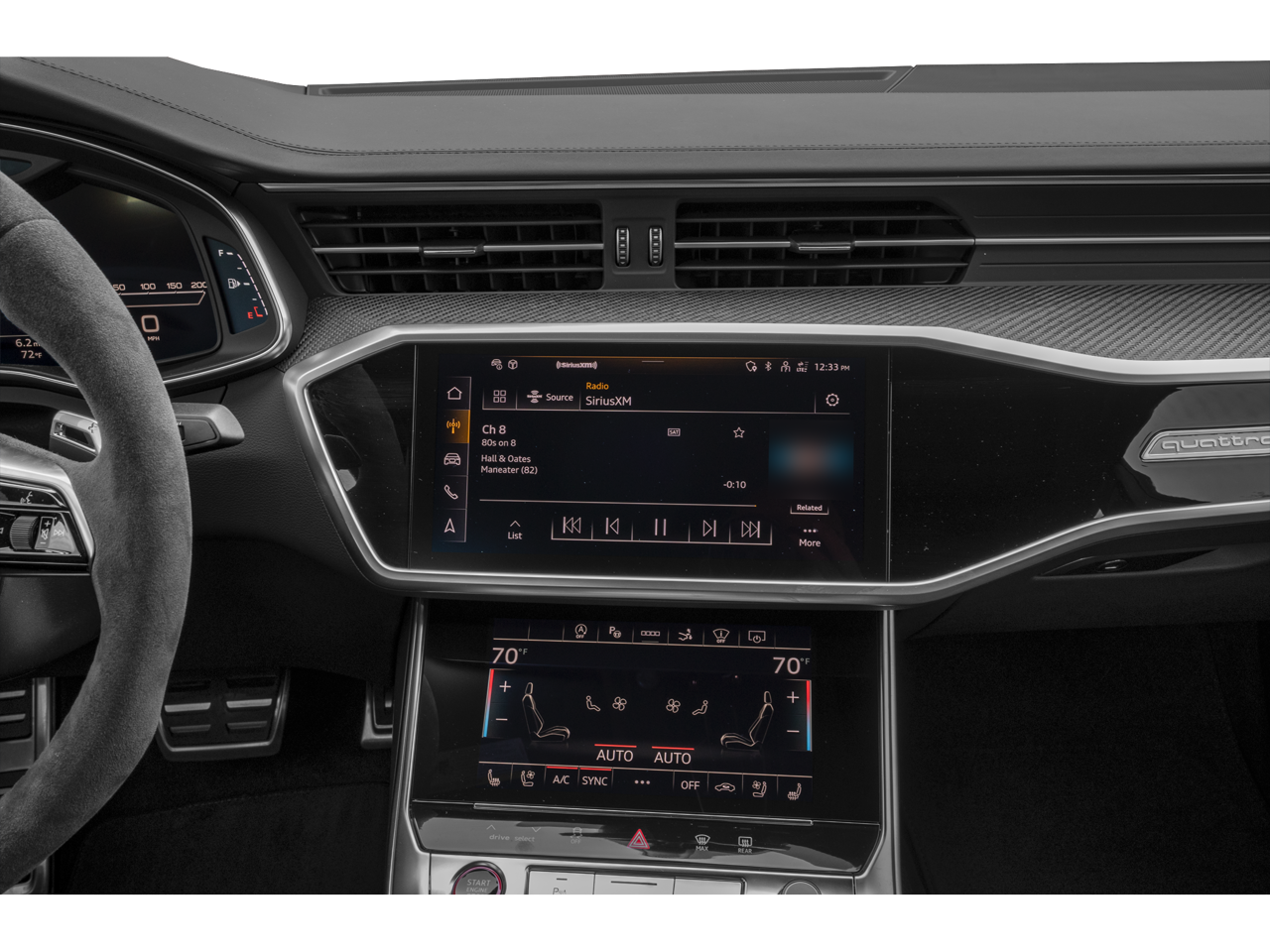 - Radio: Audi MMI Navigation Plus -inc: MMI touch response, Audi connect CARE (limited time subscription, acceptance of terms required), Audi connect NAV & PLUS w/Audi App Store (limited time subscription, acceptance of terms required), Audi smartphone interface (wireless Apple CarPlay and Android Auto) and SiriusXM w/360L (3-month platinum plan trial subscription)
