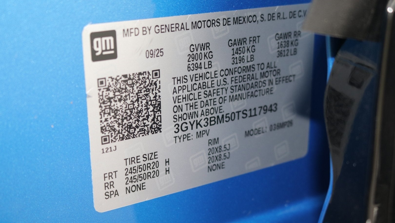 - Rear Tire Size: 245/50R20