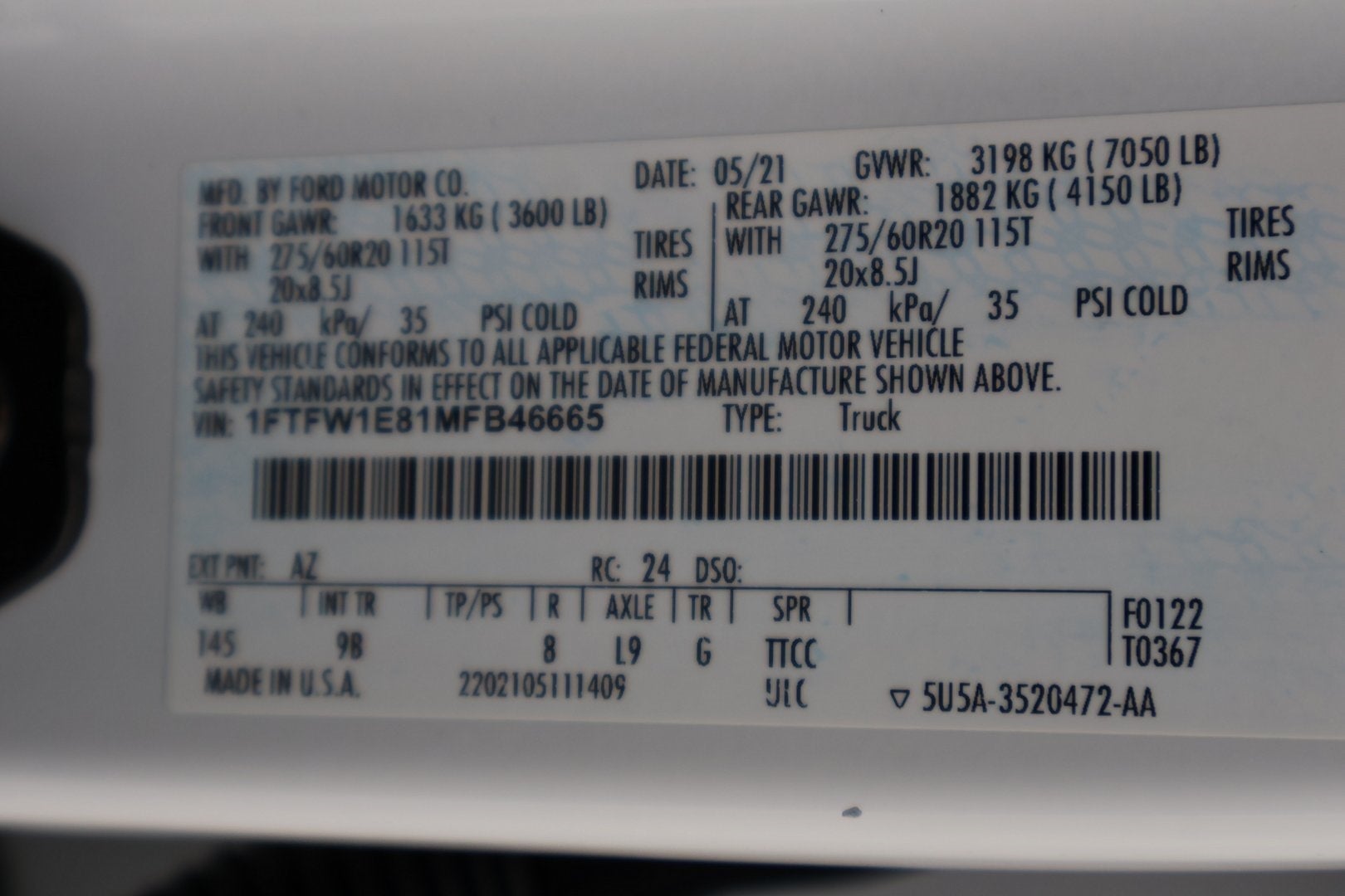 - Gross Vehicle Weight Rating Cap (lbs): 7050