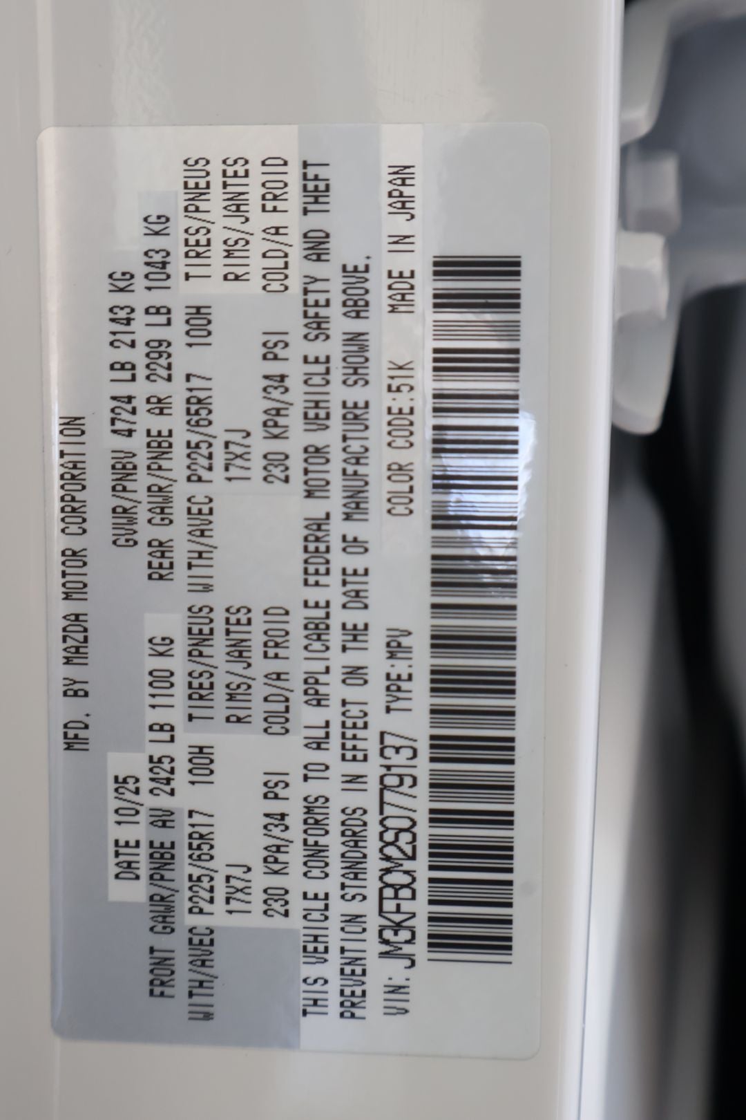 - Vehicle Name: Mazda CX-5